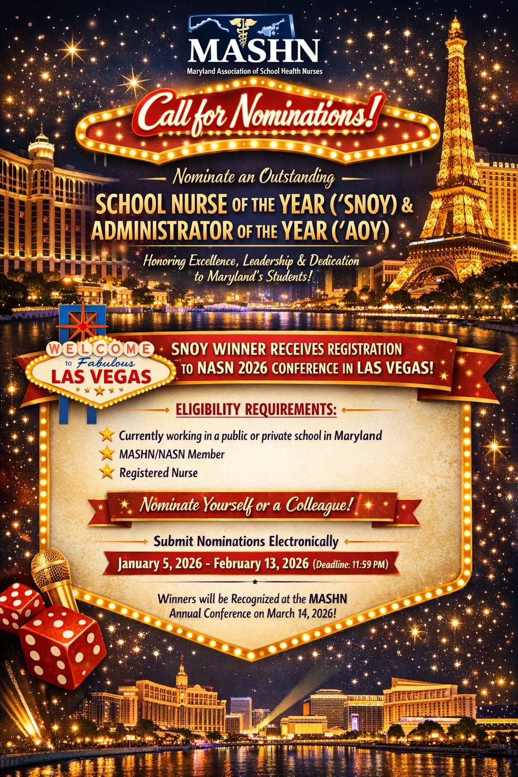 Please share with your networks, including principals, supervisors, counselors, and others who work with school nurses. The nomination platform is at MASHN 2026 SNOY/AOY Nomination Platform